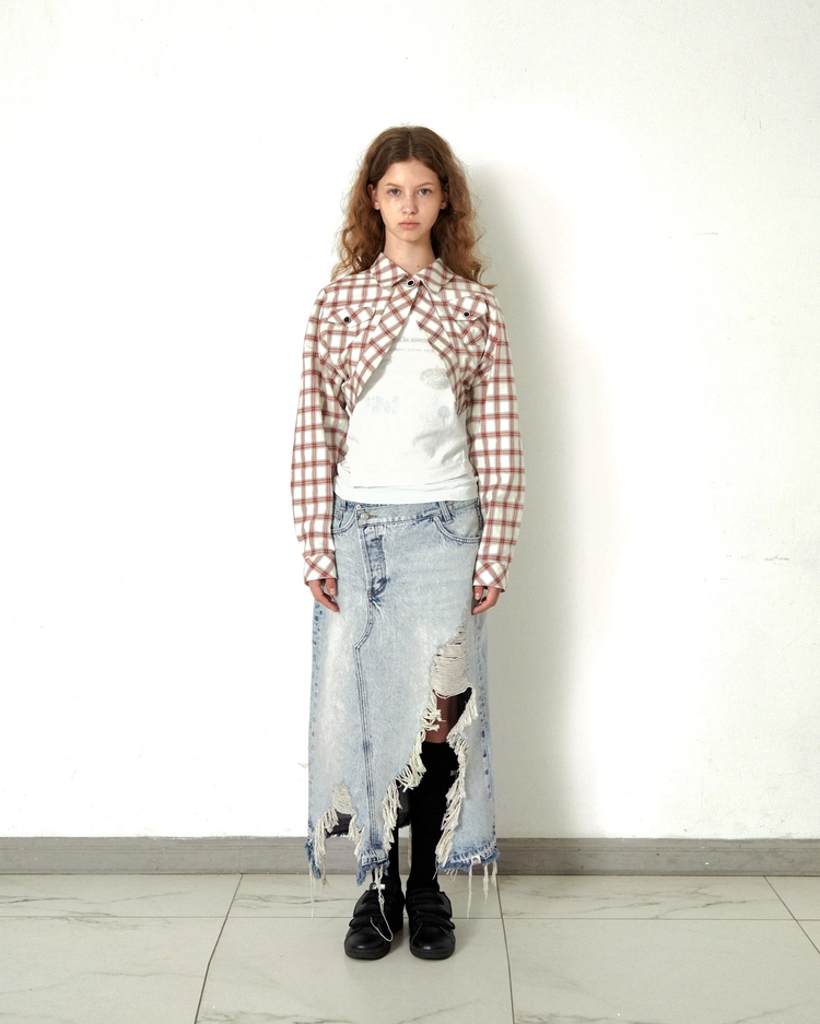 raw cut ice denim skirts
